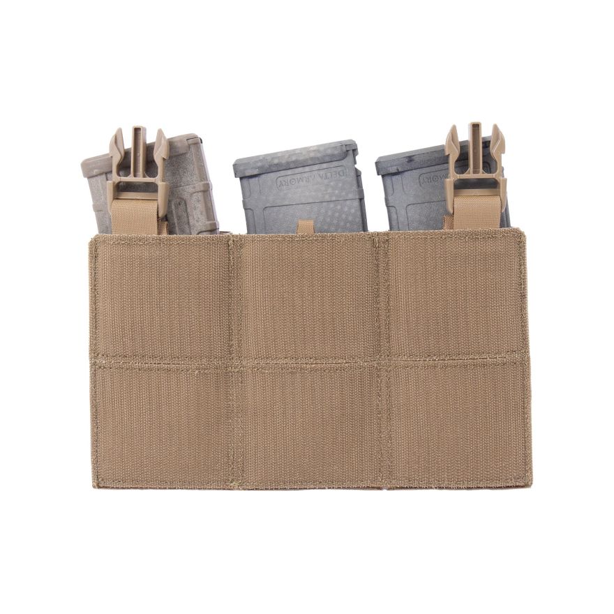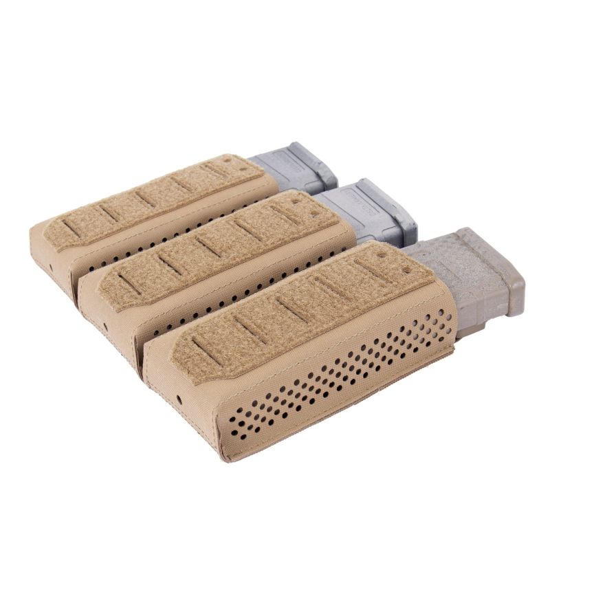 The DFP TAMP pouch can hold 3 x 5.56mm magazines with multiple configuration options available. The pouch comes with removable lightweight covered lids, Kydex style retention inserts, and the option to include bungee retention tabs for additional retention (sold separately) this allows the user to configure a mission-specific set up as required. In addition, removal of the plastic inserts allows for an AK7.62 magazine to be carried.
