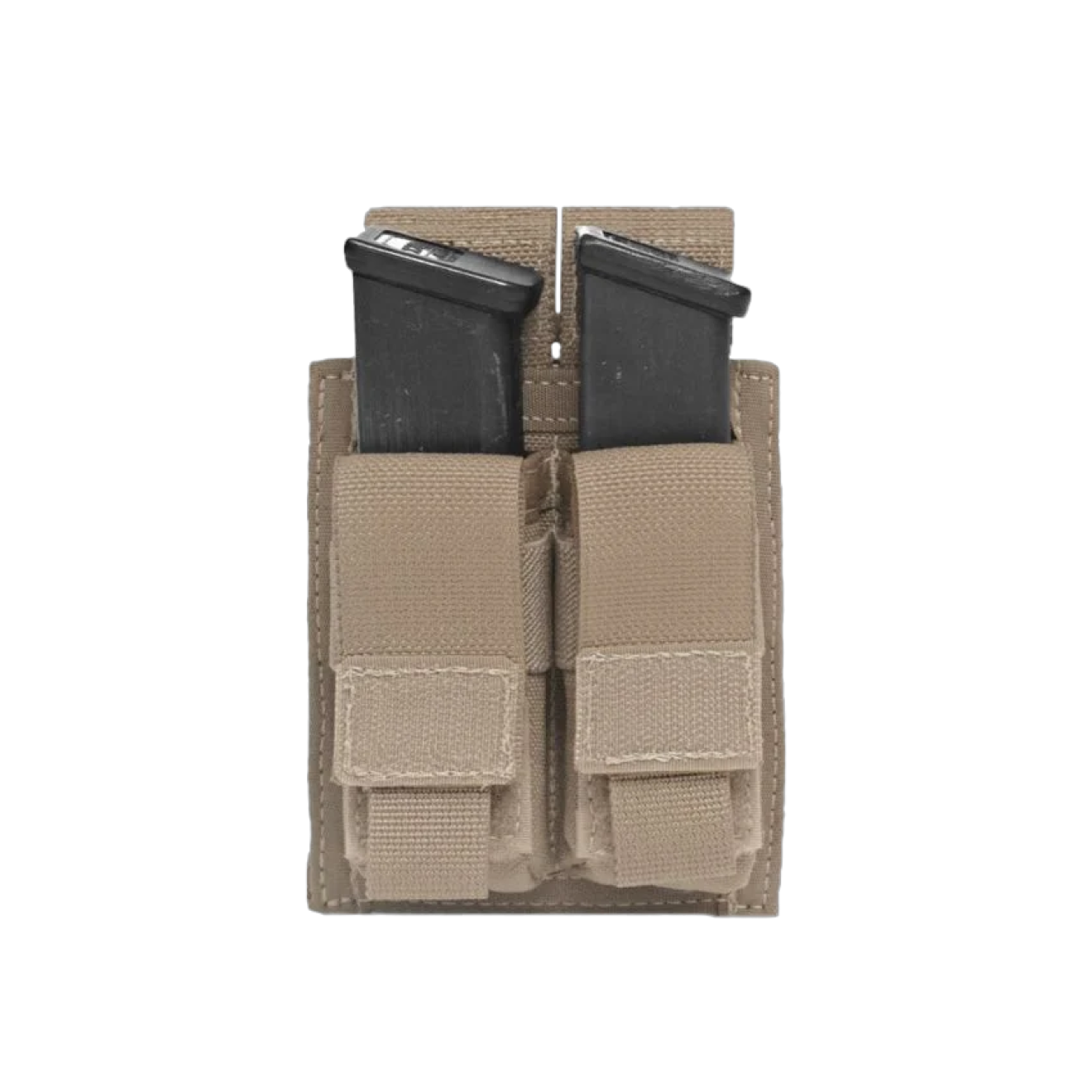 Warriors Double 9mm Direct Action Mag Pouch is compact and allows the cover flap to be rolled down and secured with Velcro fixing to allow fast access to mags.