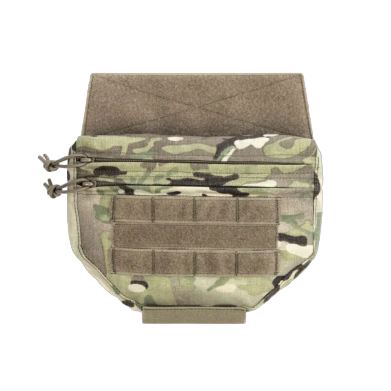Read MoreThere are 2 zip pockets, the larger and main compartment is designed for storage and quick access of larger accessories and tools, Med Kit and Admin / Maps etc. The smaller pocket is good for storage of smaller items such as torches, batteries, Compass etc. On the underside there are 2 elastic loops for chem lights and or markers. The Drop Down Pouch can also be used as an armour add on for lower abdomen protection, we have included a rear pocket which allows a level 3a soft armour insert to be added. The front of the pouch has 2 rows, each comprising 4 loops of MOLLE webbing with Velcro loop sewn on, ( and an additional row of loop Velcro in between ). This allows the attachment of other small pouches and or call sign and insignia patches. Made from Genuine U.S. Milspec materials, also referred to as a dangler.
