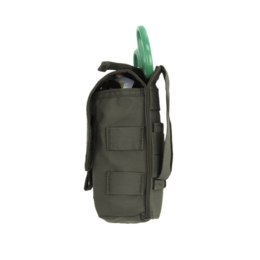 Both sides of the pouch have additional external webbing for attachment of extra CATs or smaller pouches etc. The lid of the pouch has a Velcro square for attachment of First Aid patch etc. Warriors IFAK occupies only 2 rows of MOLLE webbing so it can be mounted on any amour carrier, chest rig or fits perfectly on the rear of Warriors PLB Belt, Gunfighter Belt or Frag Belt.
