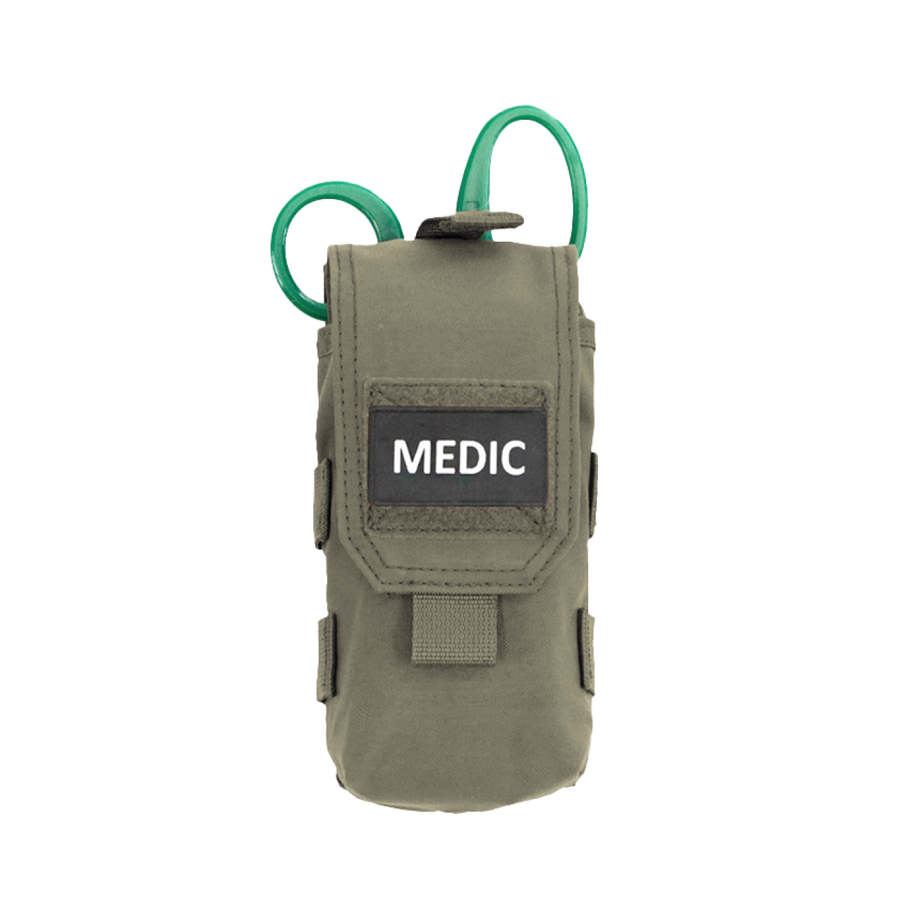 Warriors IFAK pouch is designed to hold an operators personal medical kit, Combat Gauze, CAT and Trauma Bandage. Medical shears can be stored securely at the rear of the pouch to allow quick and easy access. Internally we have introduced a webbing strap, which threads under your med kit and when pulled seamlessly elevates the contents of the pouch with one hand.