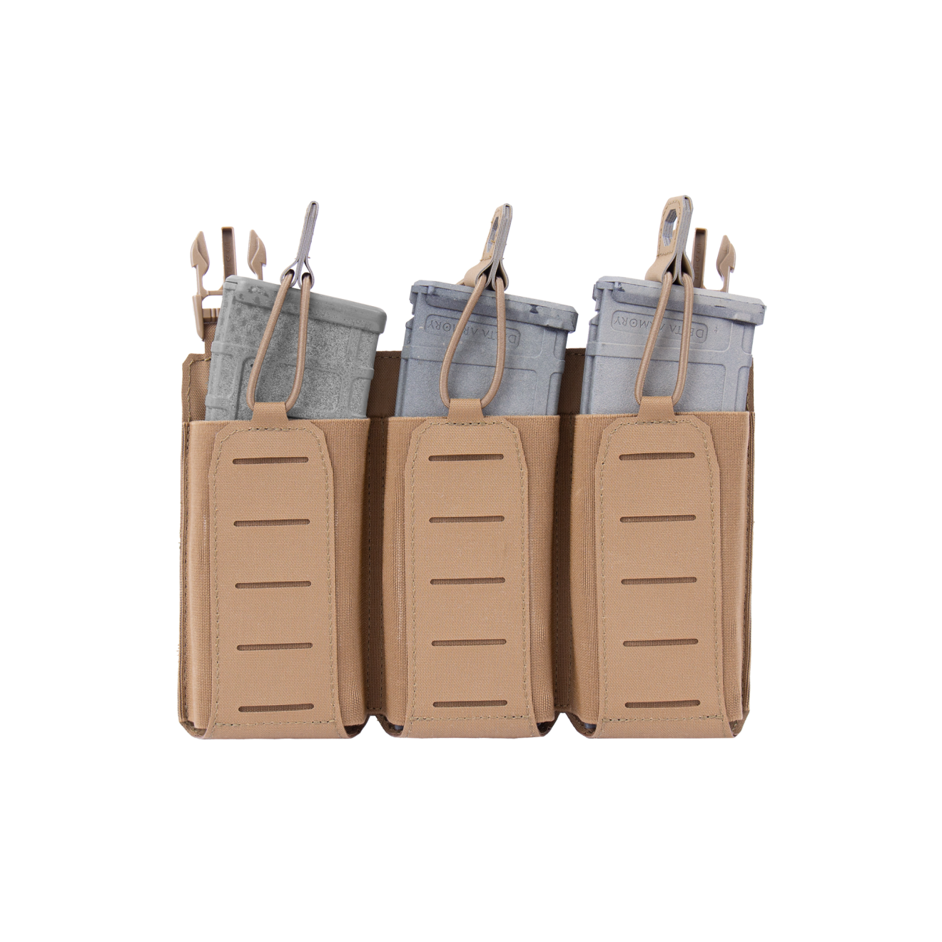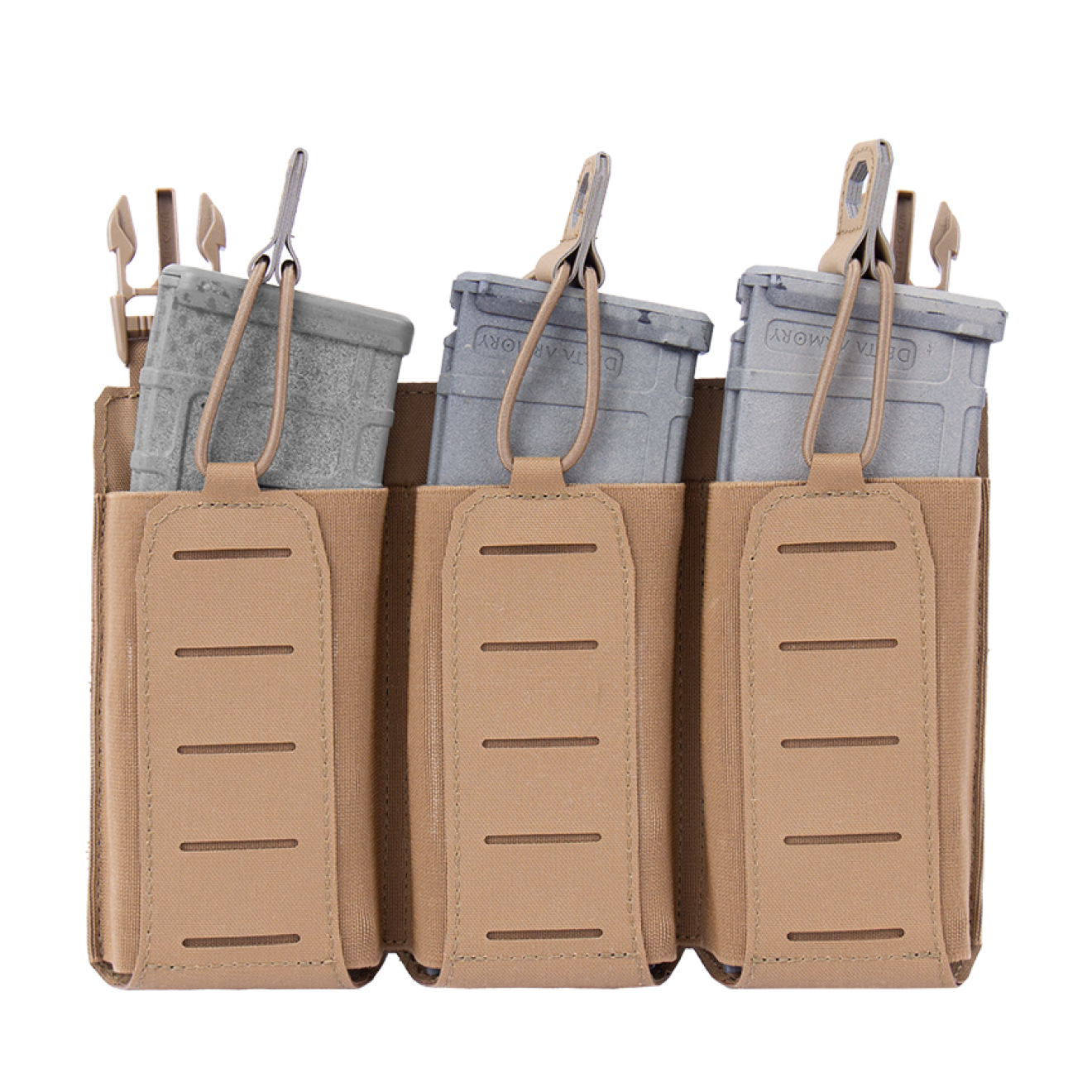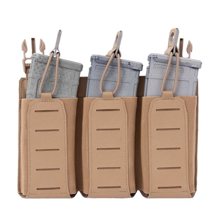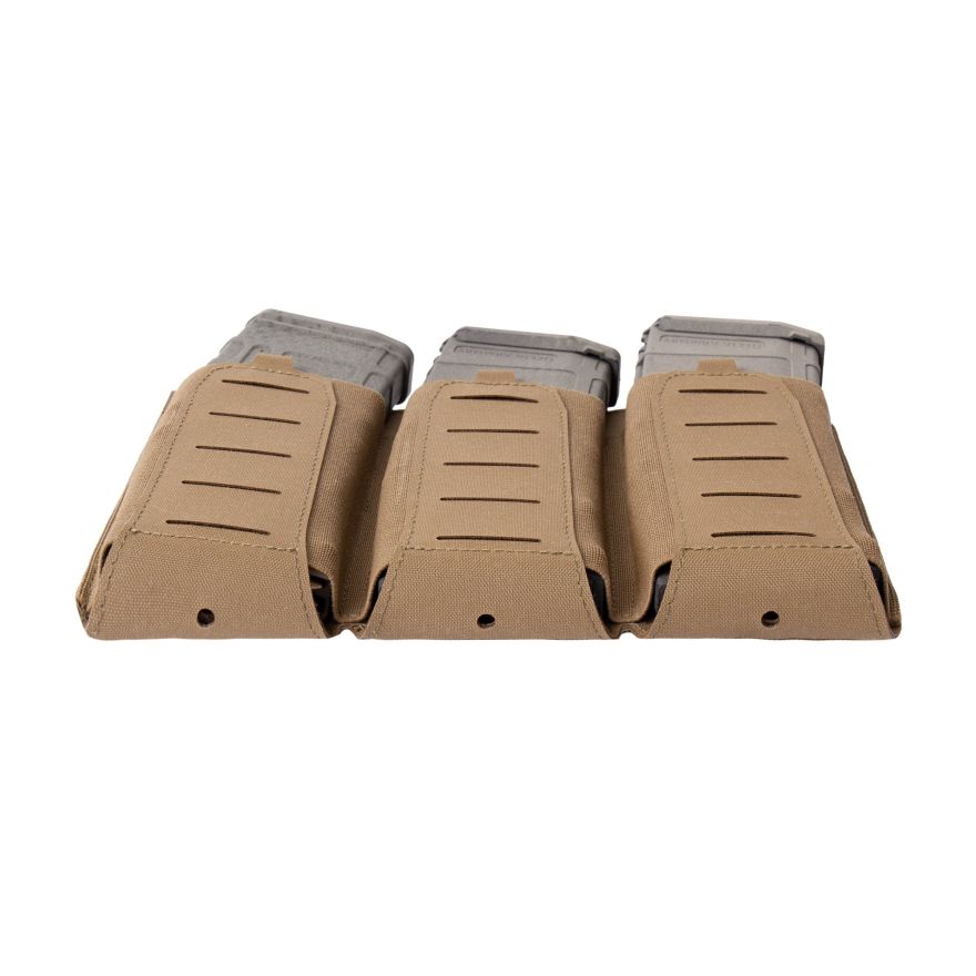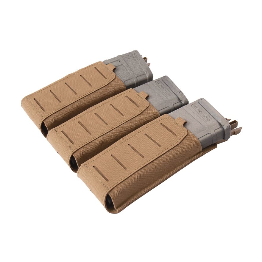 - Warrior Laser Cut Detachable Front Panel, Triple Bungee, Low Profile Elastic 5.56 Mag Pouch Coyote Tan