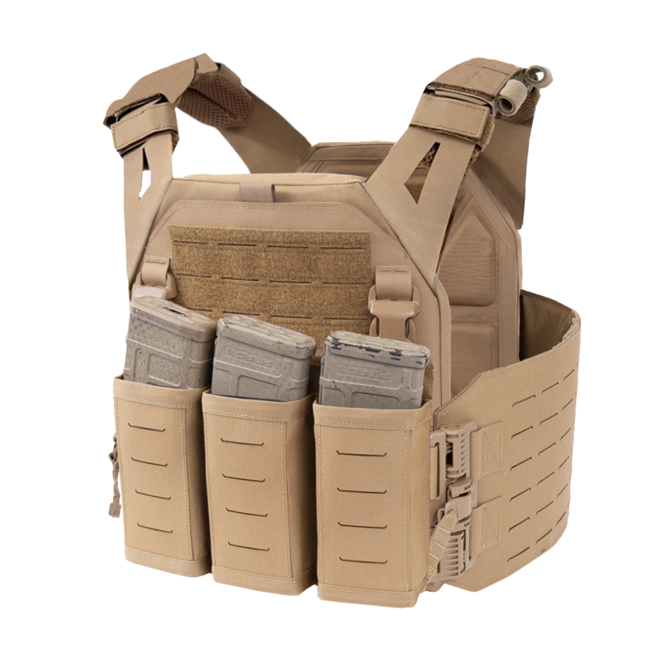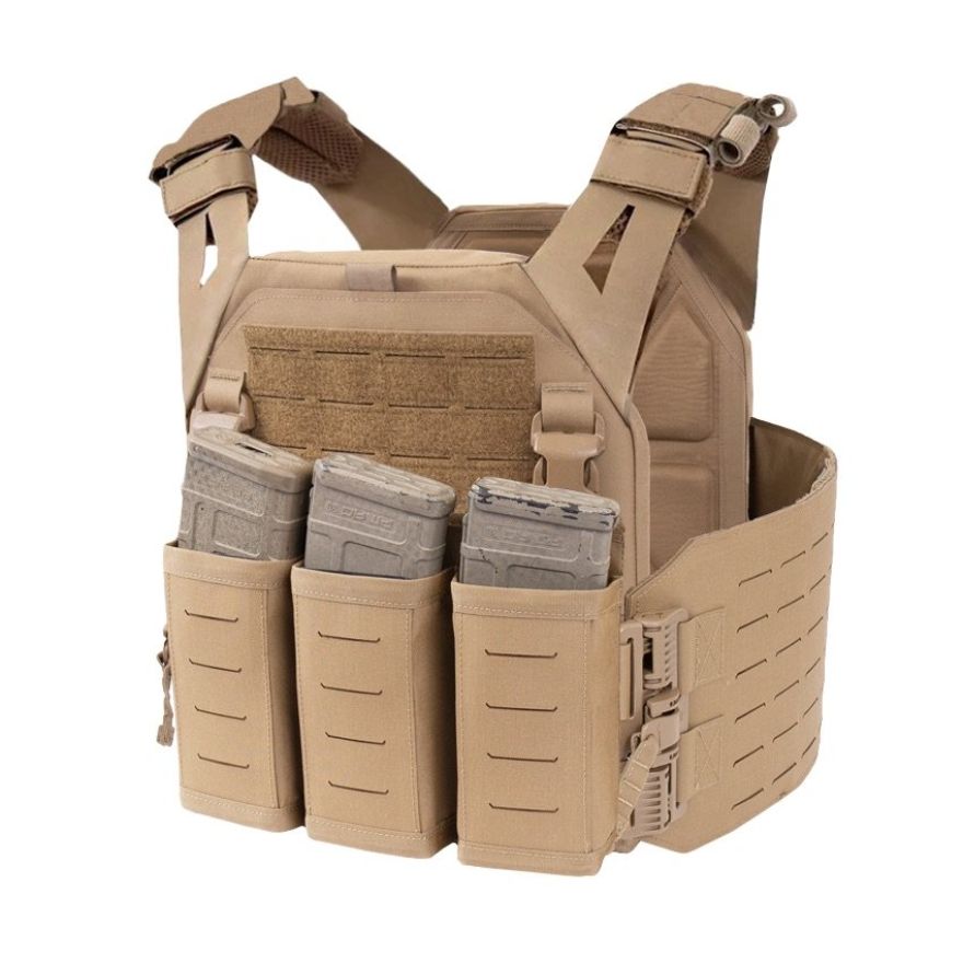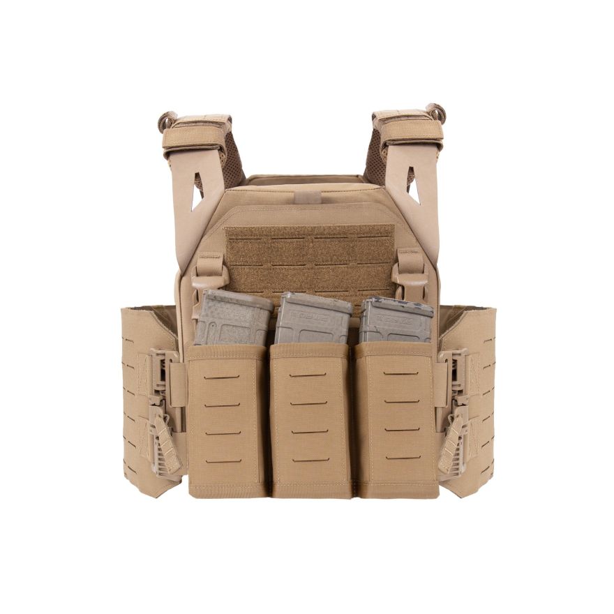 - Warrior Laser Cut LPC V1 Low Profile Plate Carrier with Solid Sides, DFP Triple Snap Mag Pouch & 5.56 Triple Inserts