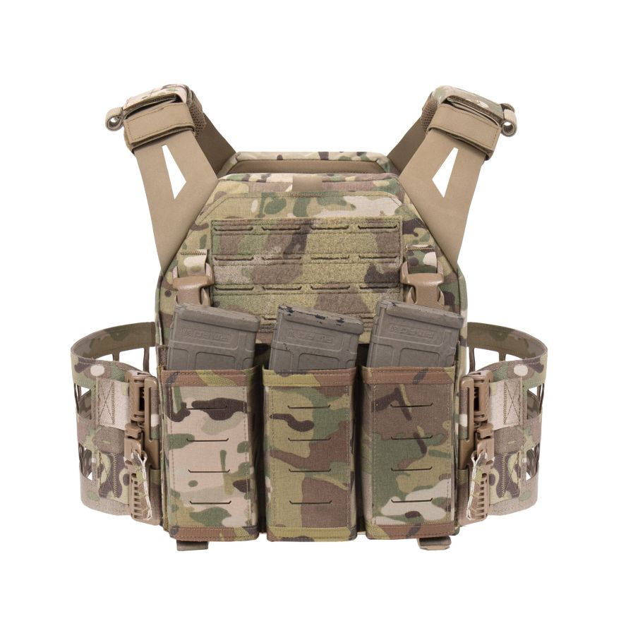 - Warrior Laser Cut LPC V2 Low Profile Plate Carrier with Ladder Sides and DFP Triple Snap Mag Pouch & 5.56 Triple Inserts