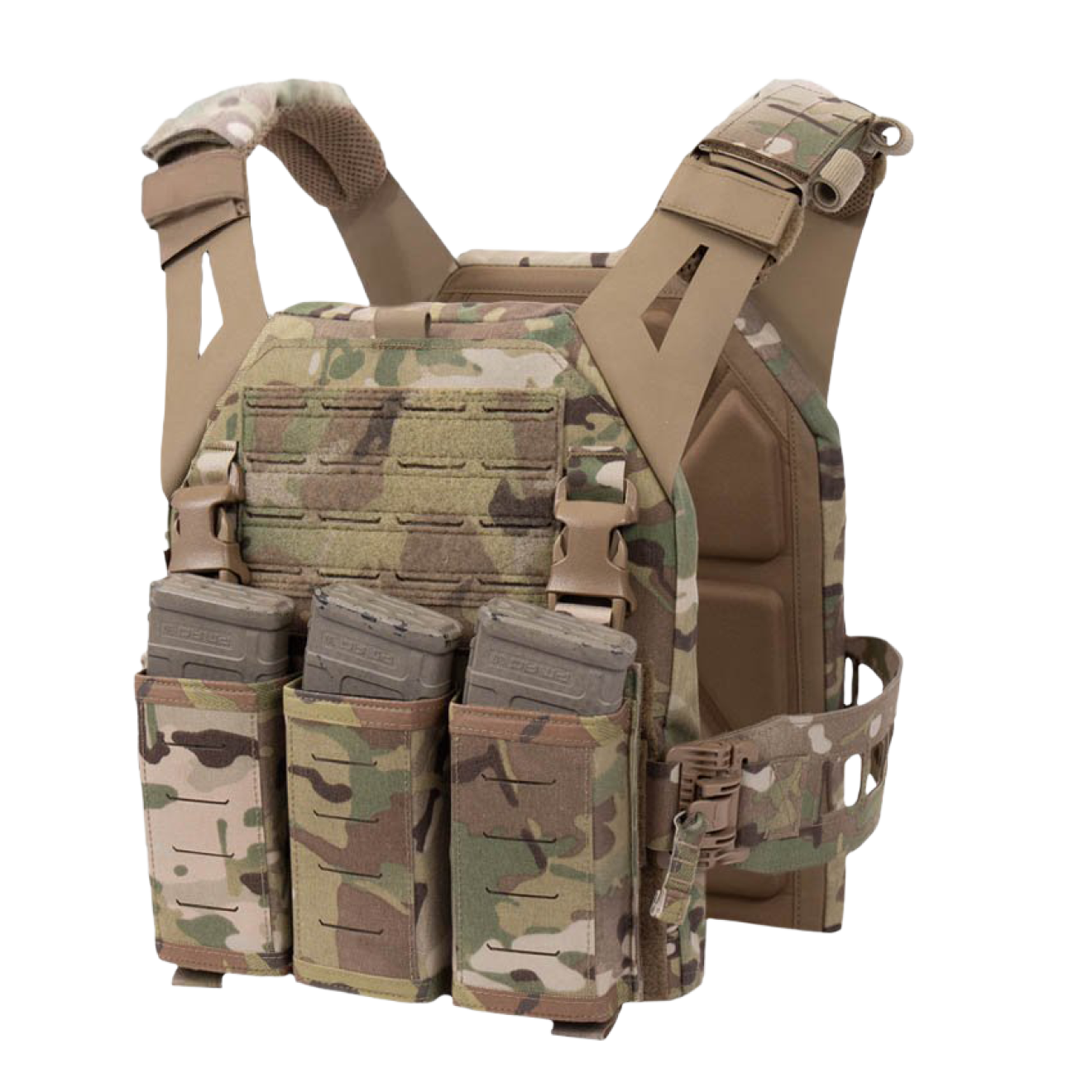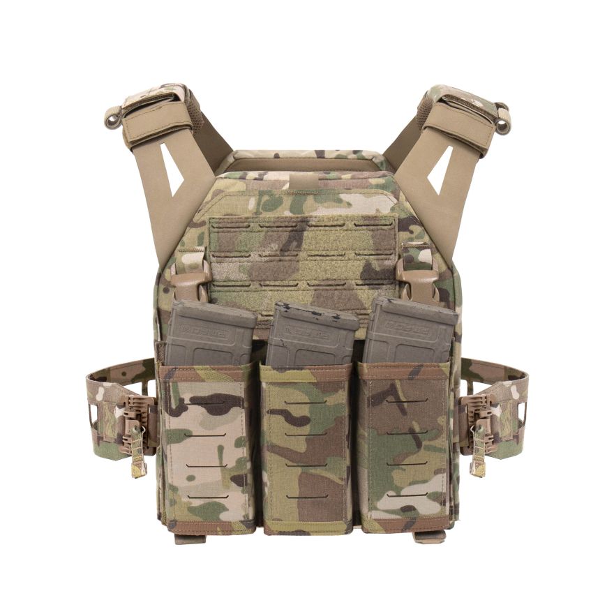 - Warrior Laser Cut LPC V3 Low Profile Plate Carrier Base With Slimline Ladder Sides, DFP Triple Snap Mag Pouch & 5.56 Triple Inserts