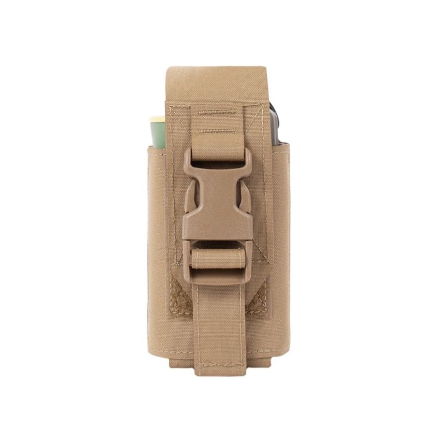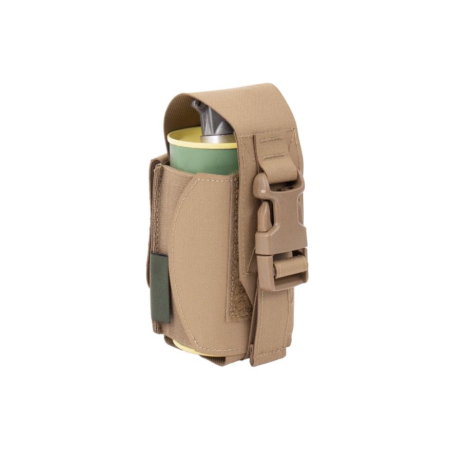Our Laser Cut Smoke Grenade Pouch can be belt mounted or attached to any of Warriors Carriers, Belts or 901 style Chest Rigs. Holds a single smoke or phosphorus grenade, and includes a plastic clip for single-handed silent opening. Made using a combination of double Mil-Spec elastic and laminate.