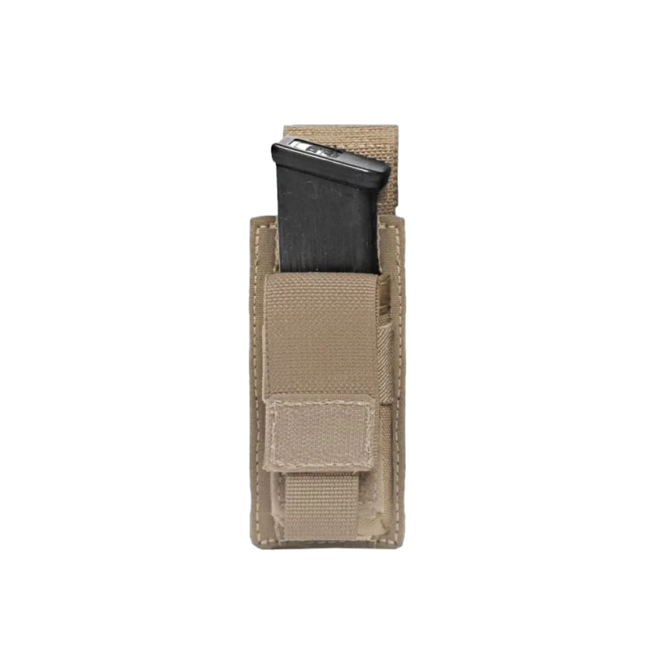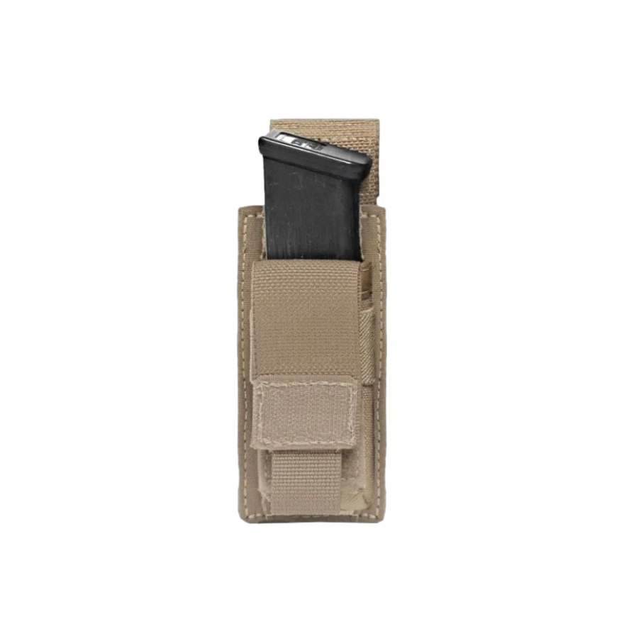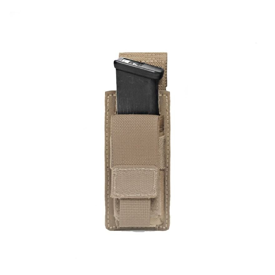 Warriors Single 9mm Direct Action Mag Pouch is compact and allows the cover flap to be rolled down and secured with Velcro fixing to allow fast access to mags.