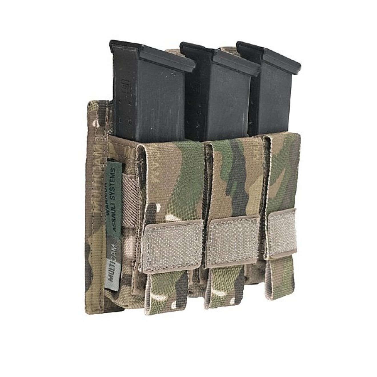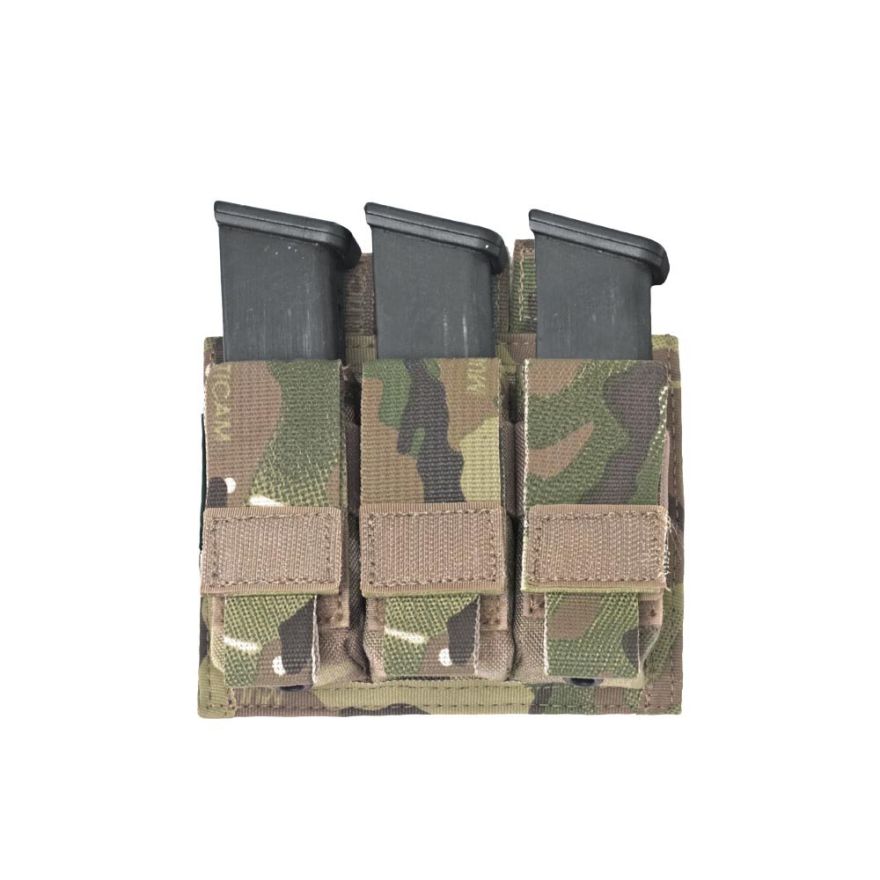 Like its smaller brothers (the single and double), Warrior's Triple 9mm Direct Action Mag Pouch, is compact and allows the cover flap to be rolled down and secured with Velcro fixing to allow fast access to mags.
