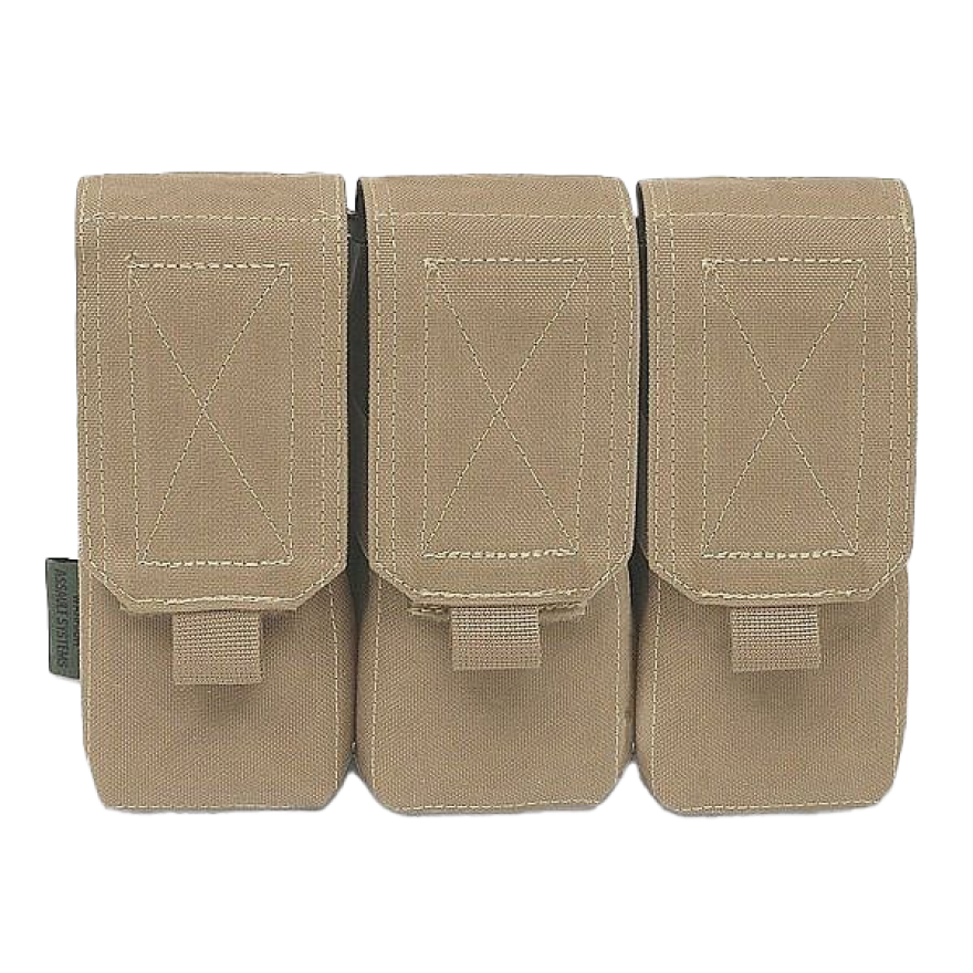 Warriors TM4 (Triple M4) pouch holds 6xM4/SA80 5.56mm mags. The TM4 has a heavy duty style flap for more robust use.